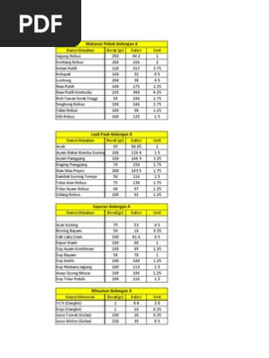 Daftar Nilai Kalori Makanan Sehari Hari Pdf